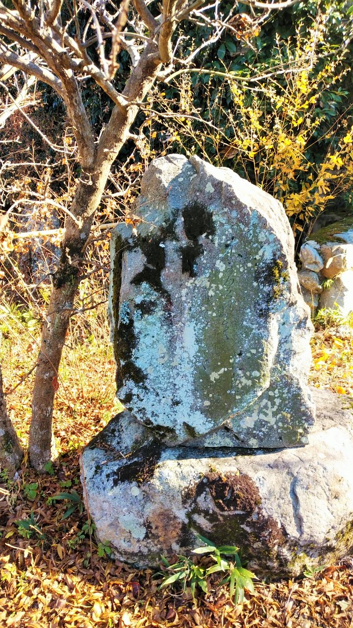 山であるが参道といわれる側に大きな石の句碑が横たわっていました。苔むしているので文字の判読は難解である。